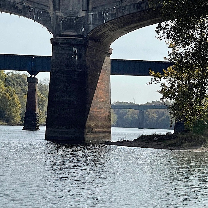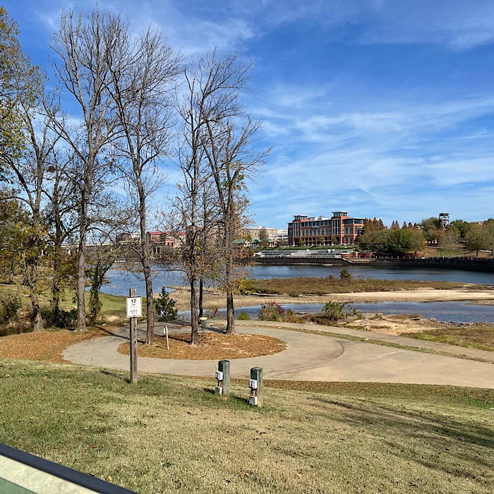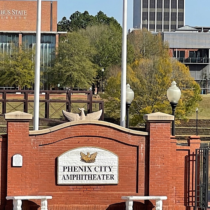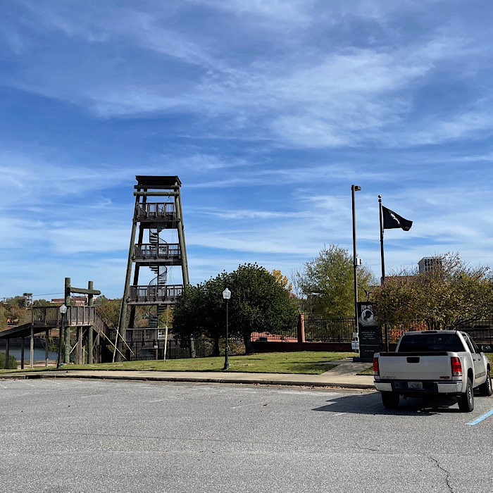 Finally, we crossed the Chattahoochee River along the Dillingham Street bridge into Alabama at Phenix City. Just past the bridge, we saw a parking lot to our right and it wasn’t a reserved parking lot. We were able to park in the wide open lot.