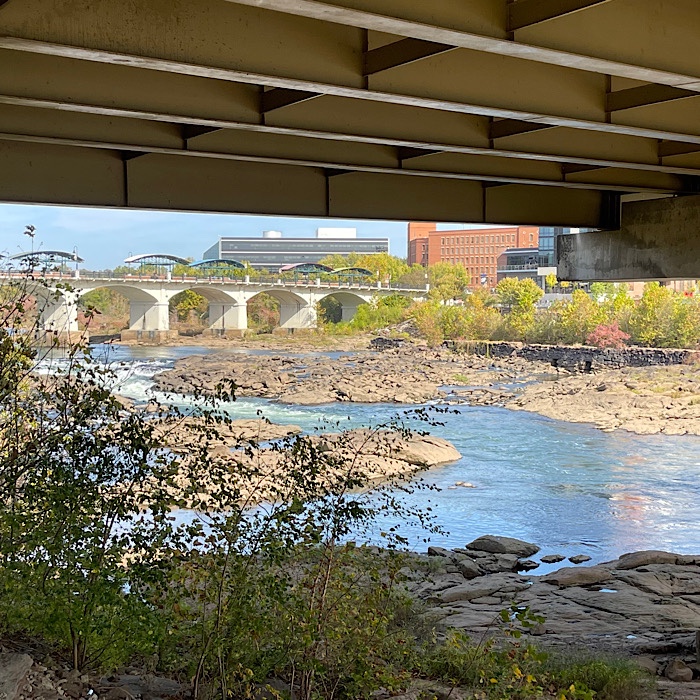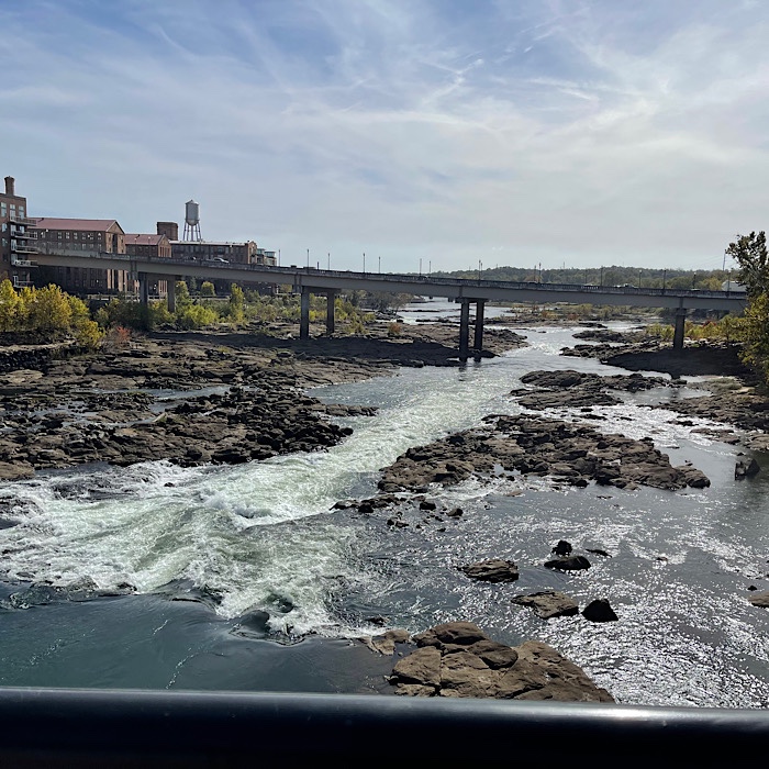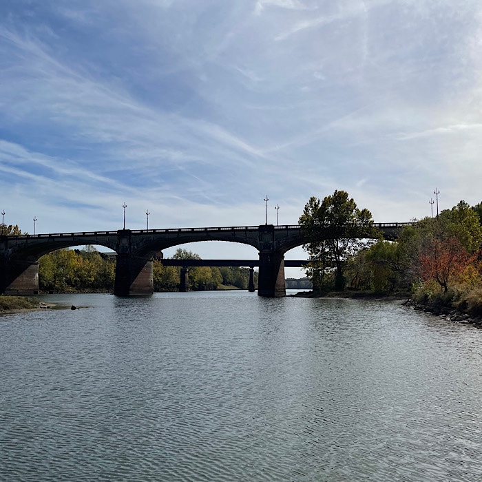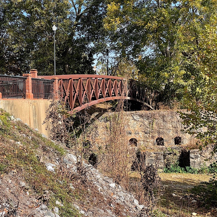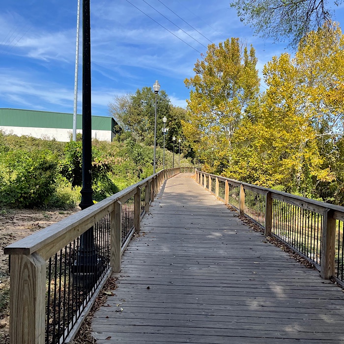 We crossed the metal bridge and came to the pedestrian bridge that goes to Historic Columbus in Georgia.