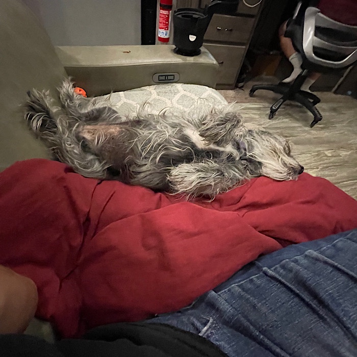That she is! For some reason, she loves Bruce the most when it comes to walks and me for food.