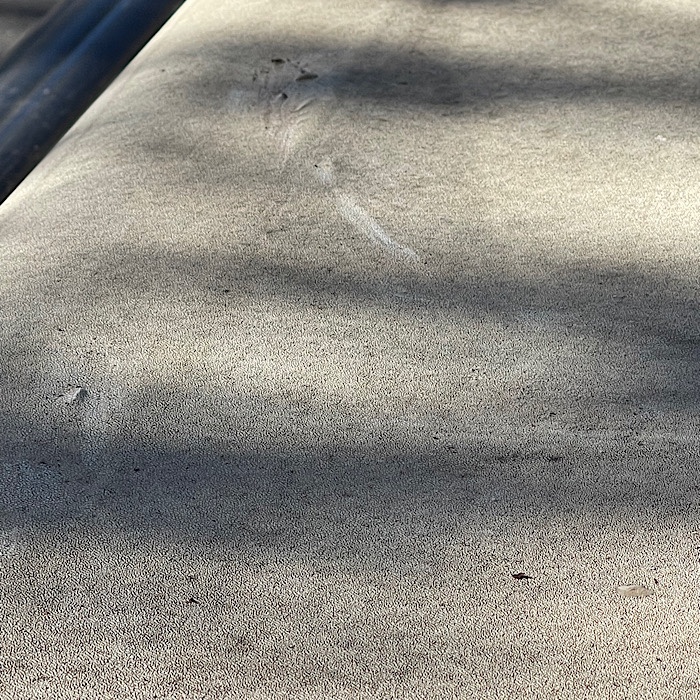 In the bright sunshine of today, we got a better look at the roof. It has a couple of scuff marks, but in one place it looks to be a little deeper. We will need to find out if our roof needs a repair.