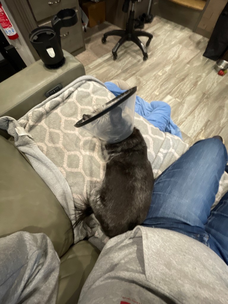 I hope that the “Cone of Shame” will be coming off soon! Give her a pat on the head for me.