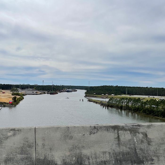 Bruce drove down the Baldwin Beach Express, which turns into the Foley Beach Express. We had to pay a toll to cross Portage Creek.