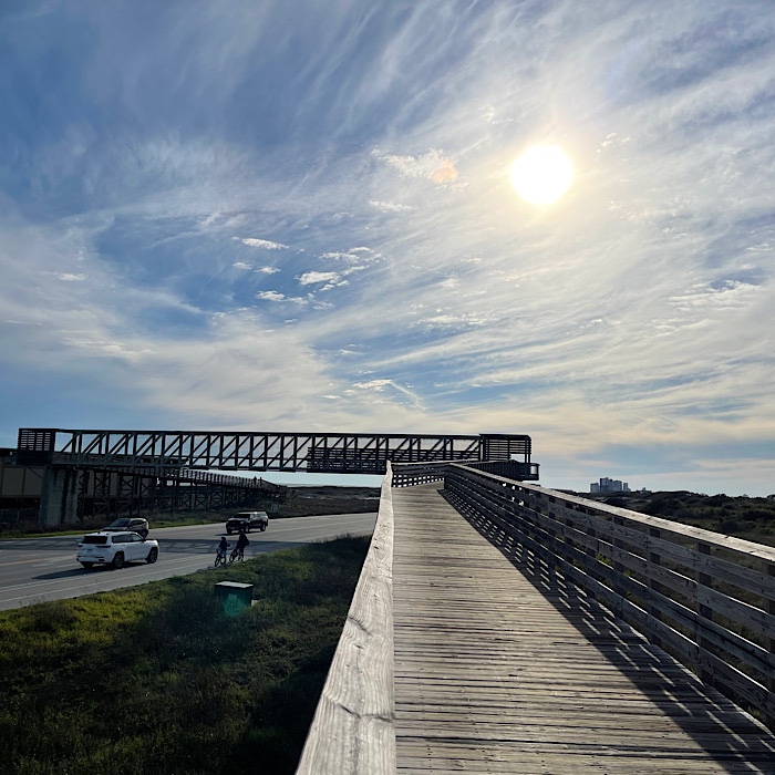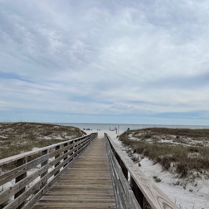 Once we crossed the bridge, we went left. The boardwalk continued all the way to the Gulf State Park Campground.