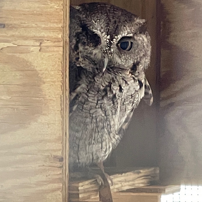 We walked around on the porch and discovered an owl. I took the picture through the mesh of its cage, so the lower section of the picture didn’t turn out great.