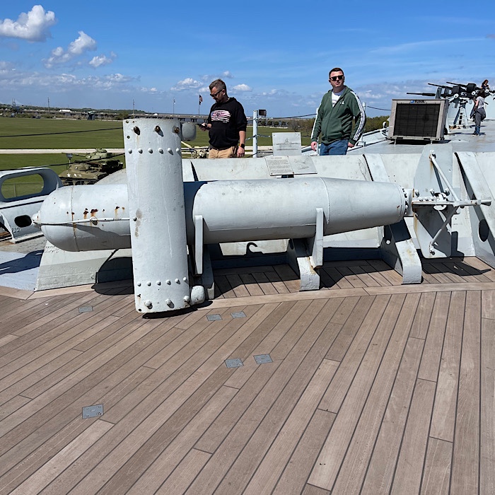 We checked out the 40mm guns at the stern (end) of the ship. We also noticed the fantail where the ship’s reconnaissance seaplanes were kept.