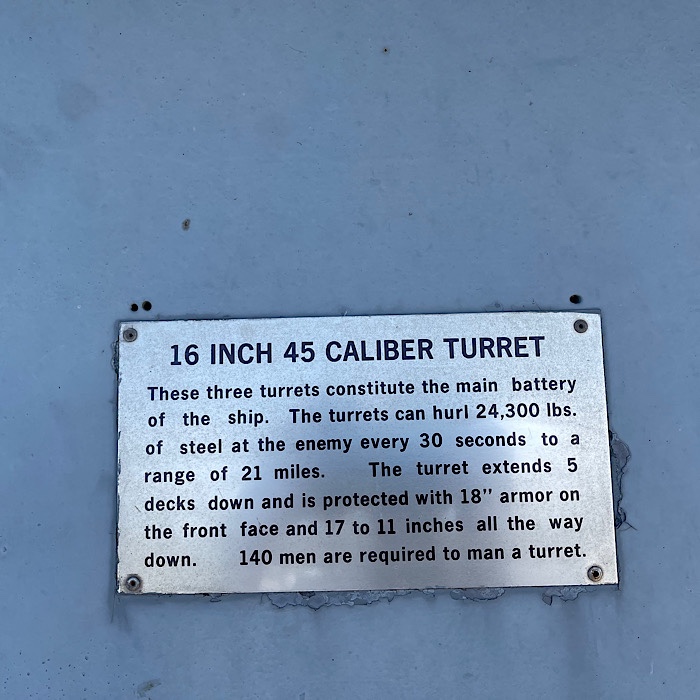 We chose to do the yellow tour – Main and upper decks, officers’ living spaces, main guns, anti-aircraft guns, ship’s bridge, flag plot room, and the fire control tower.