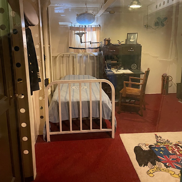 We walked pasted the officers’ staterooms. Notice the picture on the desk in the officer stateroom. It has a picture of Lt. Bundy with his wife.