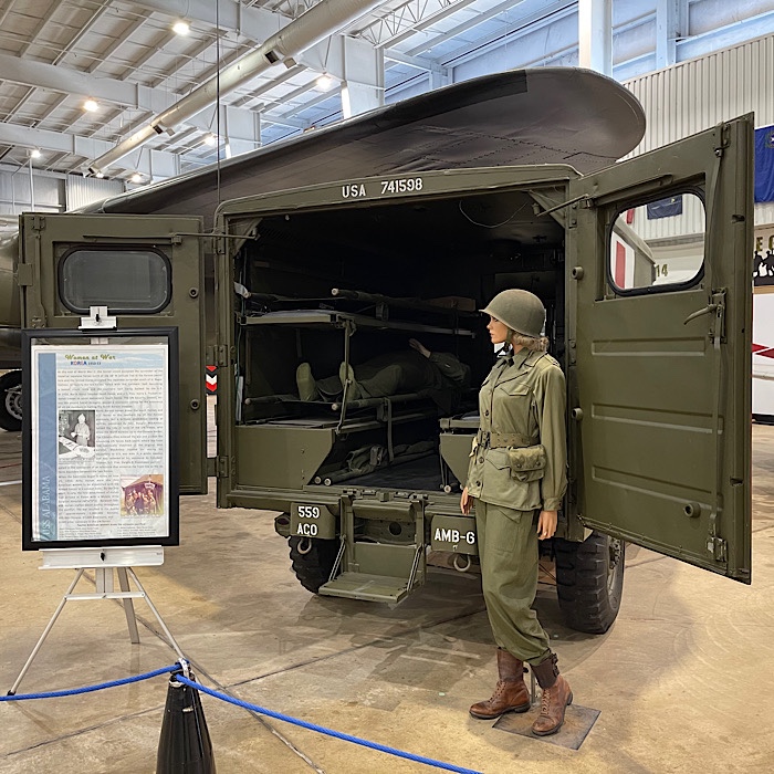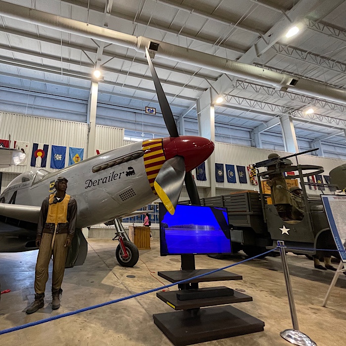 The Aircraft Pavilion had mini theaters set up in front of the various aircrafts using old theater seats or folding chairs in front of large screen TVs. These mini theaters were playing history programs about the wars and the experiences of the men who used the aircraft.