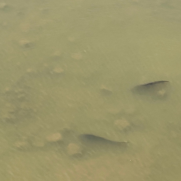 Looking over the bridge rail, we saw so many large fish.