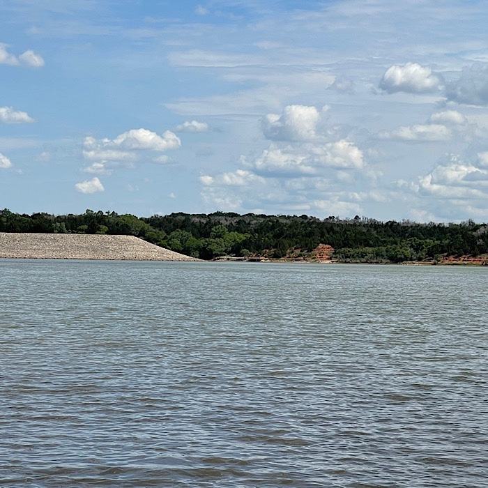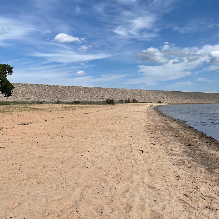 We walked over to the beach area campground along the road. We had to go out of the state park and onto the main road before going back into the state park. We walked past the dam.
