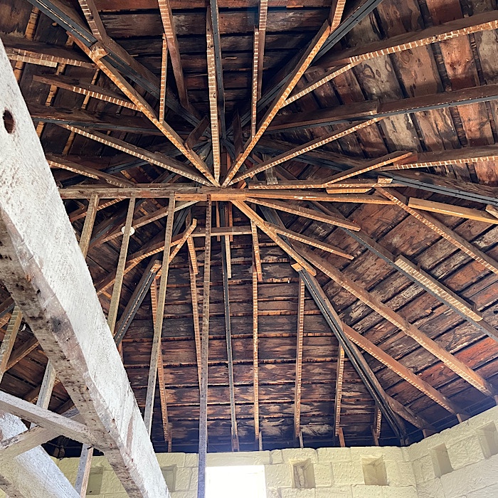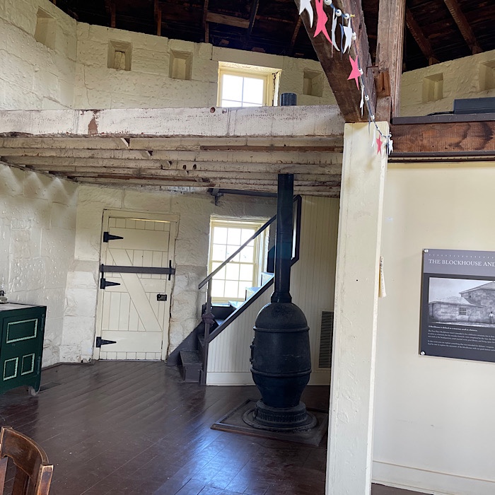 We walked out of the first building and headed to the stone blockhouse. It was built in 1867 and is hexagonal in shape with a 17 foot radius. The two wings extend north and south, each 17 feet square.