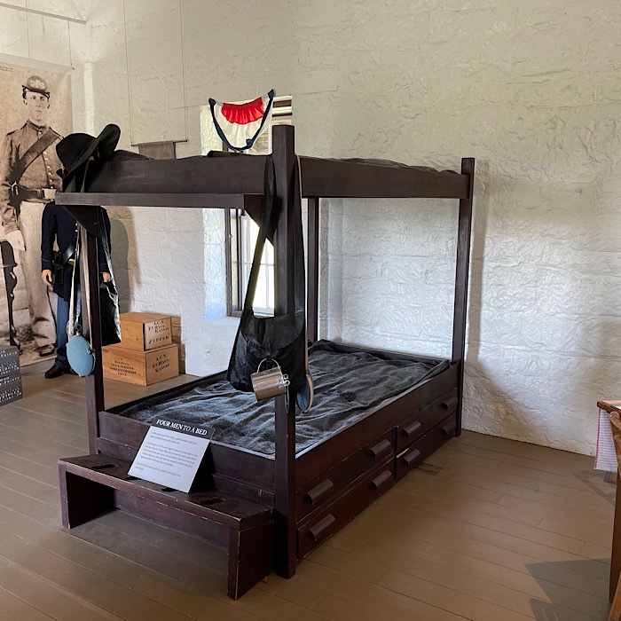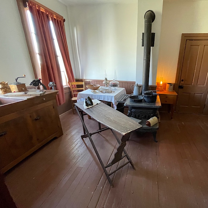 Both houses were open to tour. The individual houses were shared between two officers. A house had two front parlors, one for each officer. There were two bedrooms, one for each officer. The dinning room and kitchen were shared between the two officers who shared a house. The officer might have his family living with him. If the officer had his wife and children with him, they shared the bedroom upstairs.
