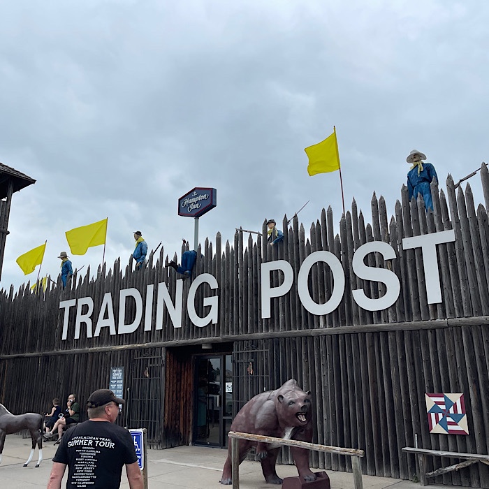 We geared up and headed to the Prairie Arts Center to see the art show. Along the way, we passed the Trading Post. I pointed to it and Bruce pulled into their parking lot.