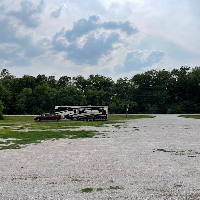 We stopped in and asked where they wanted us to park. We were told we could park anywhere in the lot, but not along their driveway. We parked near the road and leveled the rig.