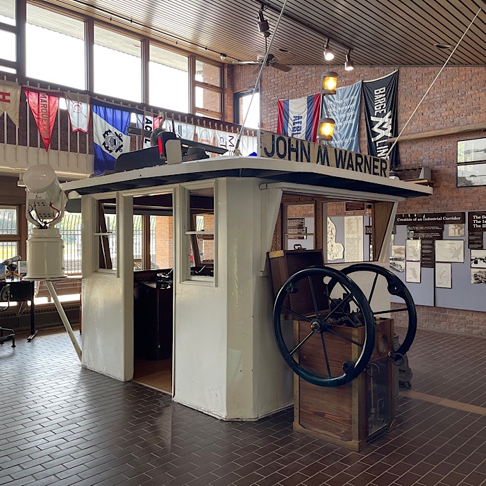 There was a salvaged pilothouse from the M/V John M. Warner on display.