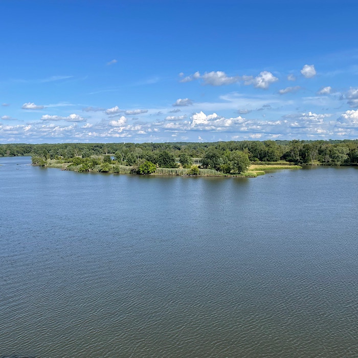 We were tired, so we only took a short hike along the bluff overlooking the Illinois River. There was a viewing platform allowing for a great view of the river and the islands in the river.