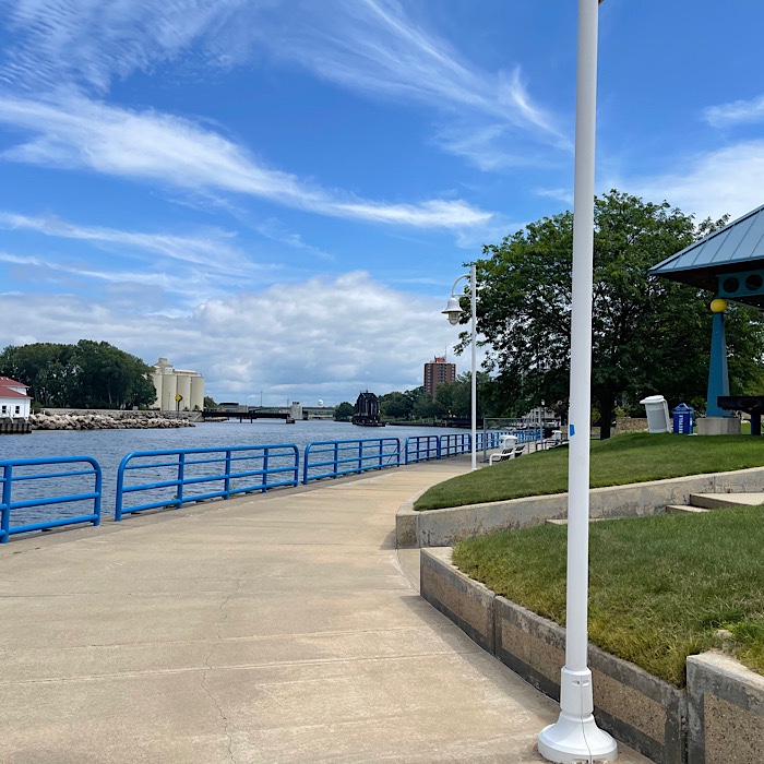 We geared up and rode to Tiscornia Park on the Benton side of the river. The parking fee was $10 and the lighthouse was closed, so we decided the parking fee was a bit much since we wouldn’t be able to see the lighthouse.