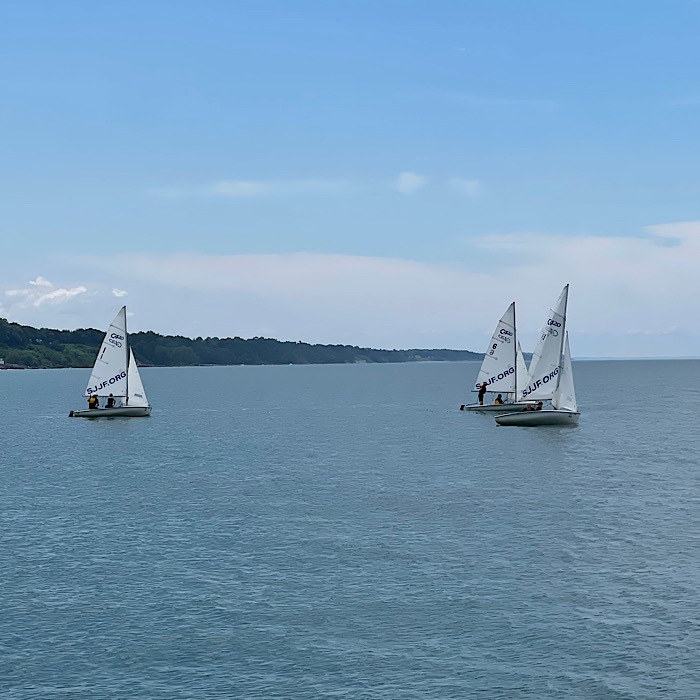 Class must’ve ended for the sailors, they were sailing their boats into the marina.