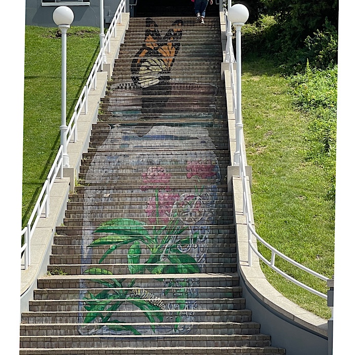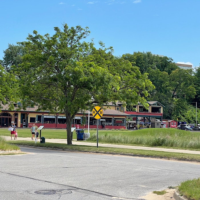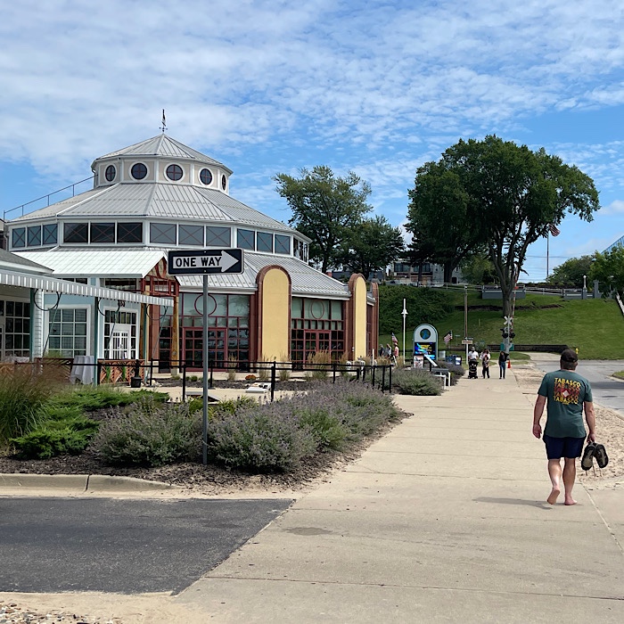 After walking around the train station, we climbed the steps to the top of the hill. We looked at the free parking and then walked along the very touristy street, back towards the St. Joseph River.