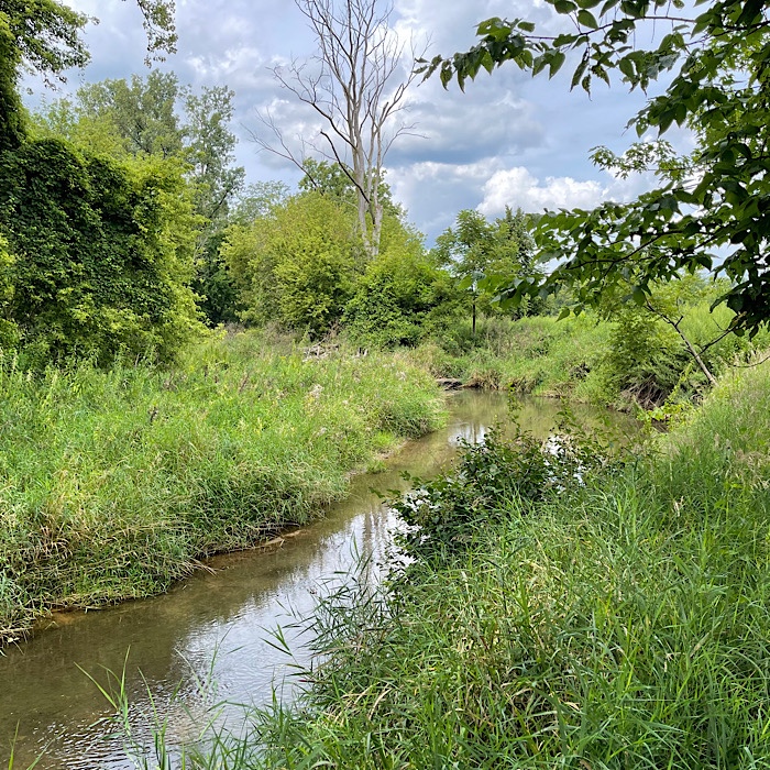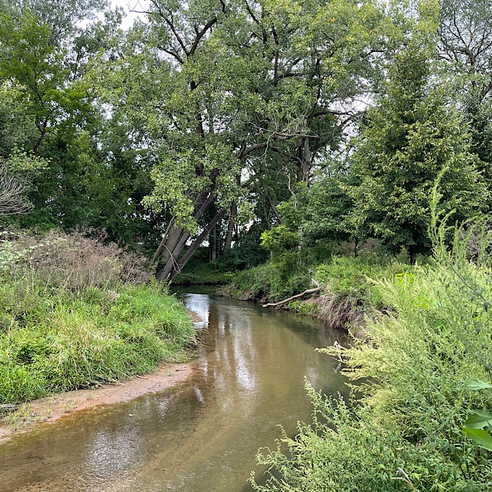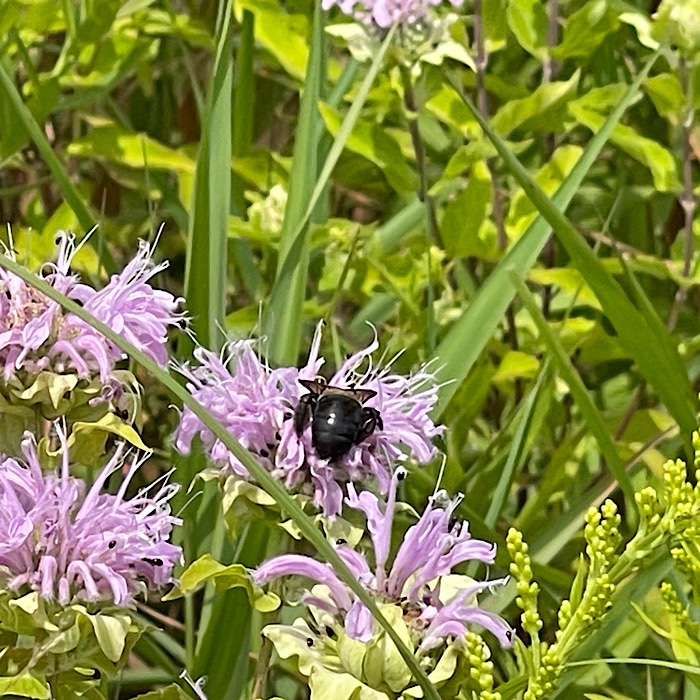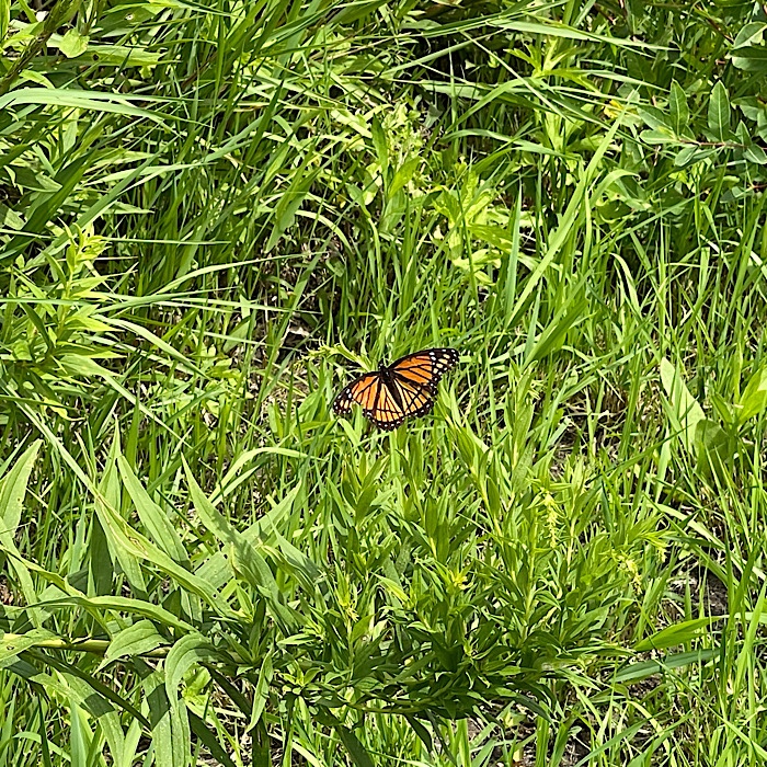 After we crossed the bridge, the trail was in the woods. The mosquitoes found us, so we turned around and walked quickly back into the sunshine.
