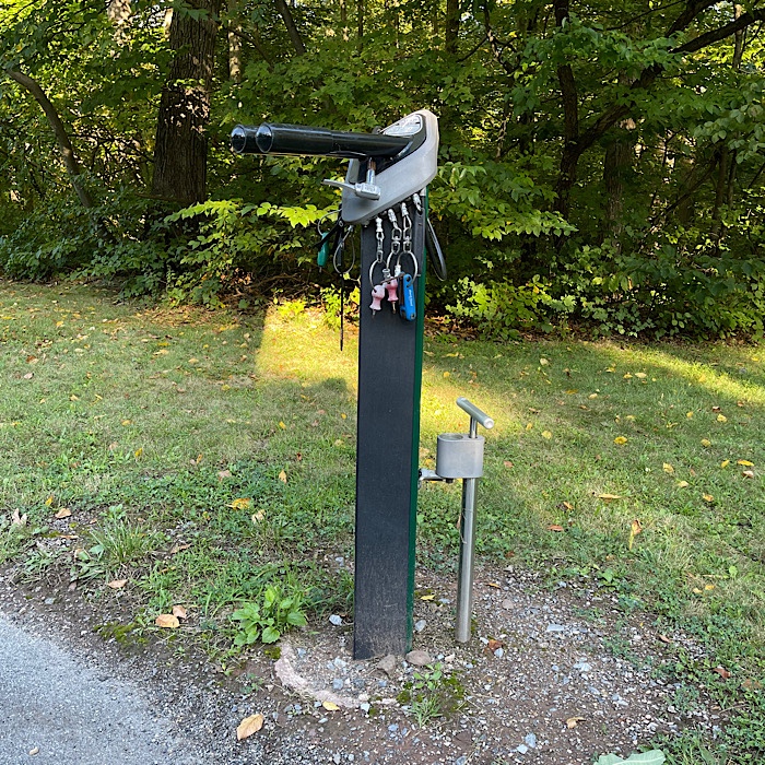 The campground is heavily wooded. It is made up of four loops, with two loops being pet friendly. They have pet clean up stations throughout the two loops. The bathrooms were spotless. There are no pull through sites, but most of the sites are at an angle to make it easy to back into. This is not shown on the map.