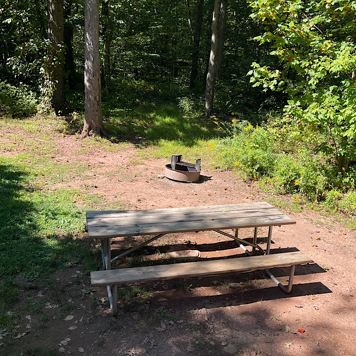 Our site was full hookups (water, electric, and sewer). Some sites are no hookups or water only, so be careful if reserving a spot. The sites have a picnic table and fire ring with a grill.