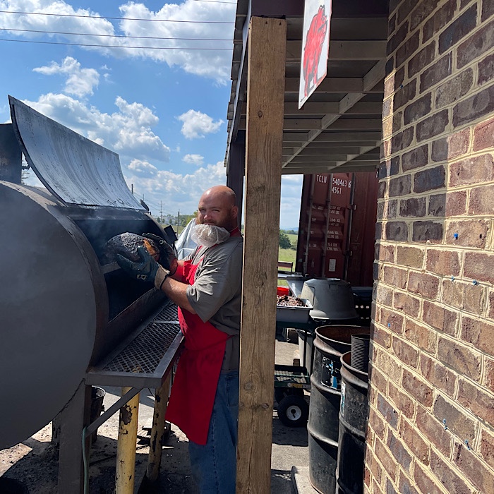 As we were leaving, the pit master was taking BBQ out of the smoker. He was kind enough to let me take pictures.