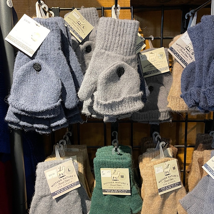 I bought some vegetables and apples. I enjoyed looking at the gift store and purchased Alpaca hiking socks. We also bought a lamb roast, as Bruce loves lamb.