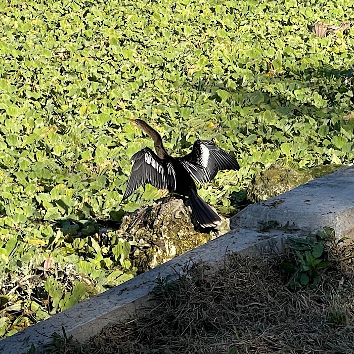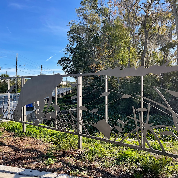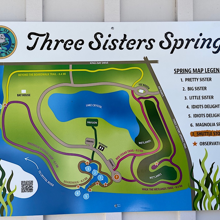 The trail was gravel and very level. We walked past the central lake and the wetlands to get to the boardwalk where the manatees are visible.