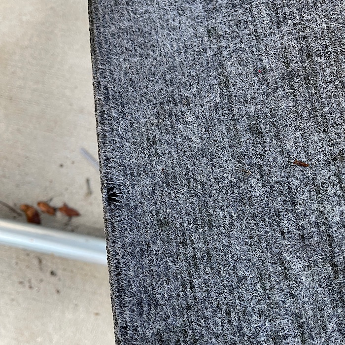 This October (2023), the wear and tear on the carpet was becoming obvious. The carpet developed holes and started having green stains (algae?) on it.