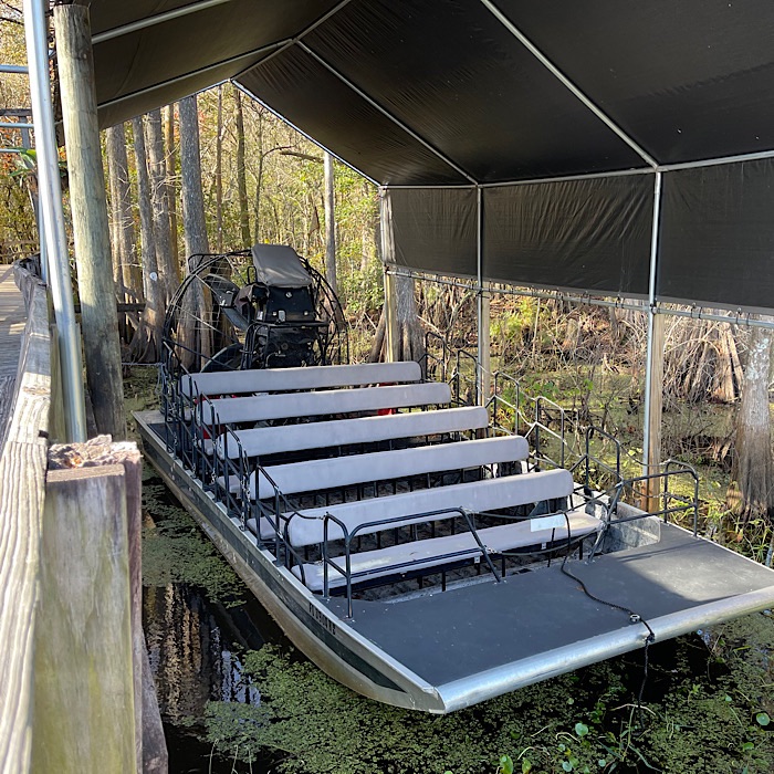 Once the captain showed up, he gave us a short safety speech. Don’t stand up while the boat is moving, don’t get out until he lets us and wear the hearing protection while the boat is moving. He also talked about the tour and what to expect. Since it was a cool day, he promised not to get us wet, if he could avoid it. He said normally, he would really open the engine up on the way back and water would splash everywhere and everyone would get soaked. He answered questions, such as “had the company ever had an airboat turn over?”