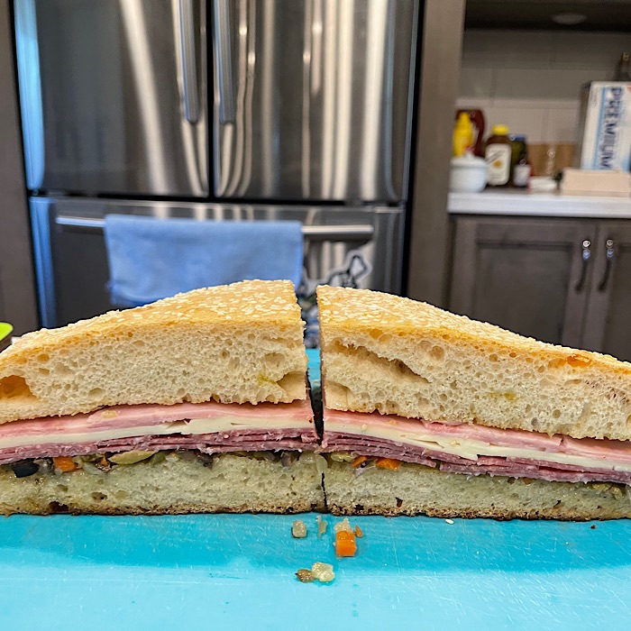 I had hoped to get a good Muffaletta when we were staying at Frog City RV Park outside of Lafayette, LA. It didn’t work out, so this time when the craving struck, I decided to make one.