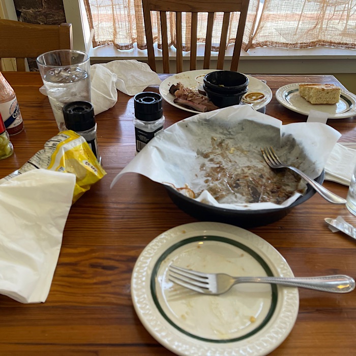 Bruce’s three ribs didn’t have any sauce and the bite he gave me was delicious. The ribs were smoked and cooked to perfection.