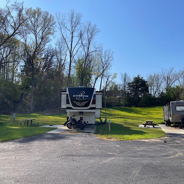 It was an easy back in spot. It would be nice if the pad was wider. Even with the RV positioned on the pad more to the utility side, there isn’t room for me to easily get to the door from the front of the RV. If the ground wasn’t slippery clay, it wouldn’t be a problem.
