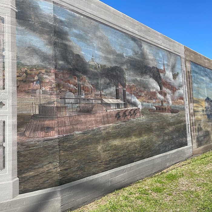 We walked along the flood retaining wall. It has murals of the historic events in Vicksburg. I will just share a few. Each mural has a plaque detailing what the mural is about.