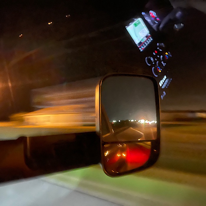 We left the RV in the truck at 4:20 AM. Along the way, we drove through some rain.
