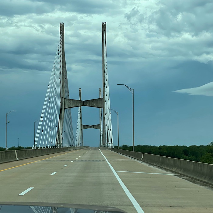 We headed to Mississippi on Hwy 65 curving around Lake Chicot, then we continued onto Hwy 82/278 on around Lake Chicot, then over the Mississippi River on the Greenville Bridge.