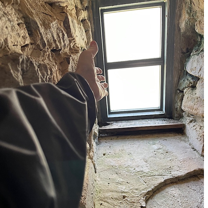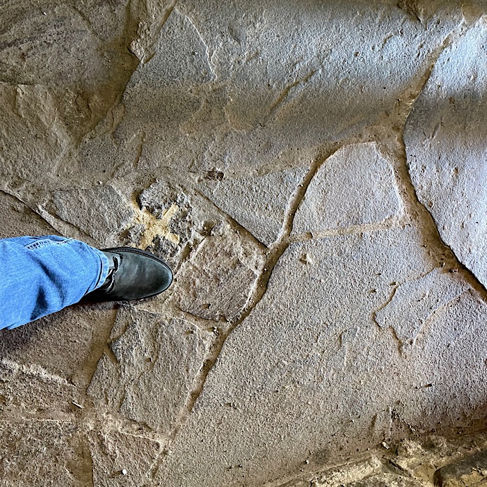 After reading the sign, we went back inside the tower to find the āXā that marked the highest spot.