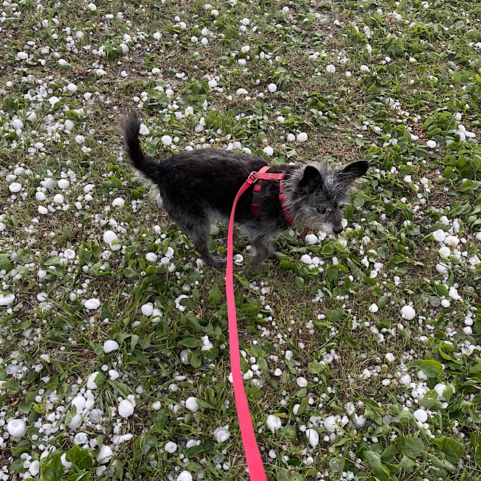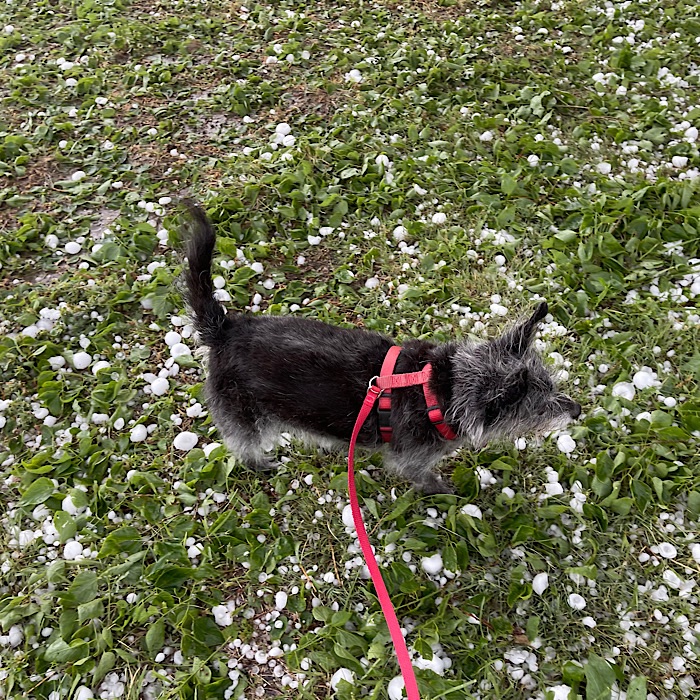 Bruce handed Nox to me and took a video of the hail. Poor Nox was shivering and shaking.