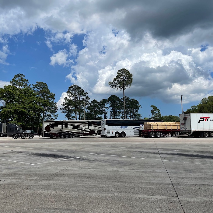We stopped at the Brunswick rest area. There was a bus load of students who didn’t seem to understand you shouldn’t walk in front of large vehicles.