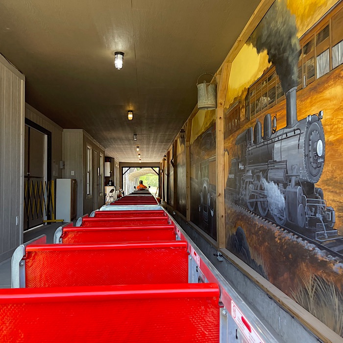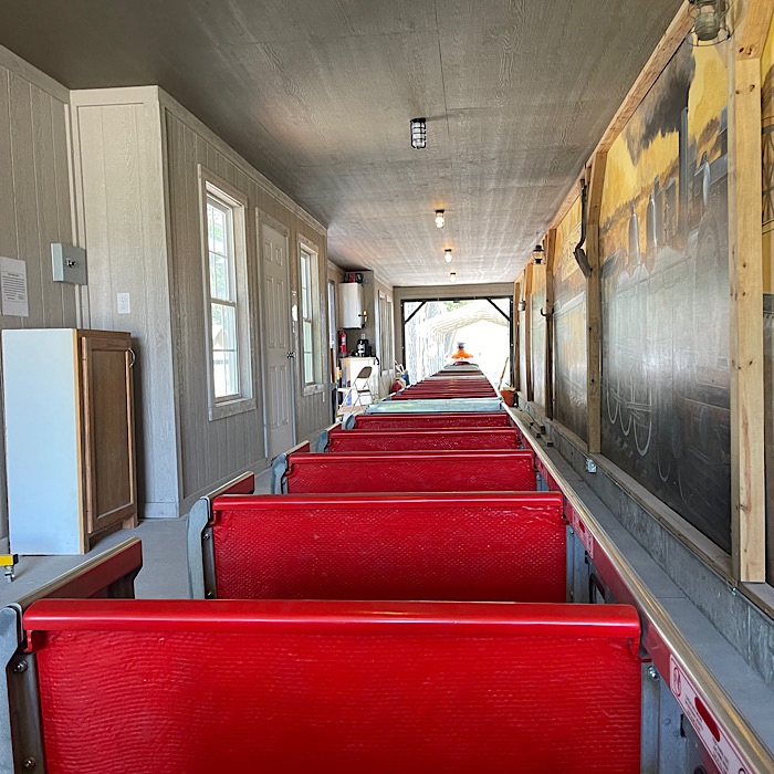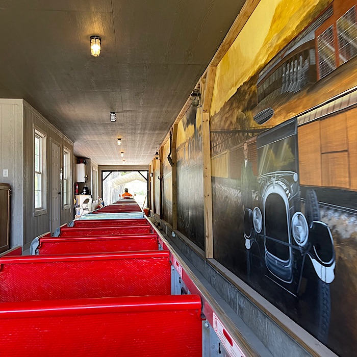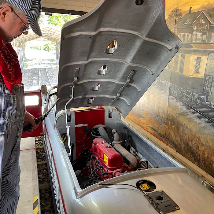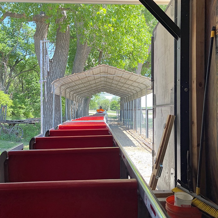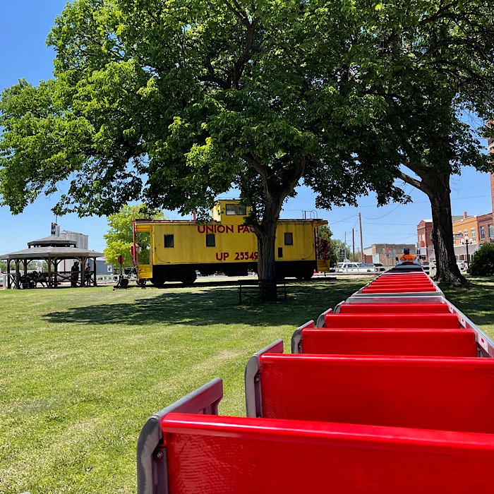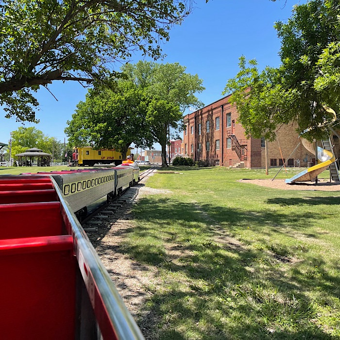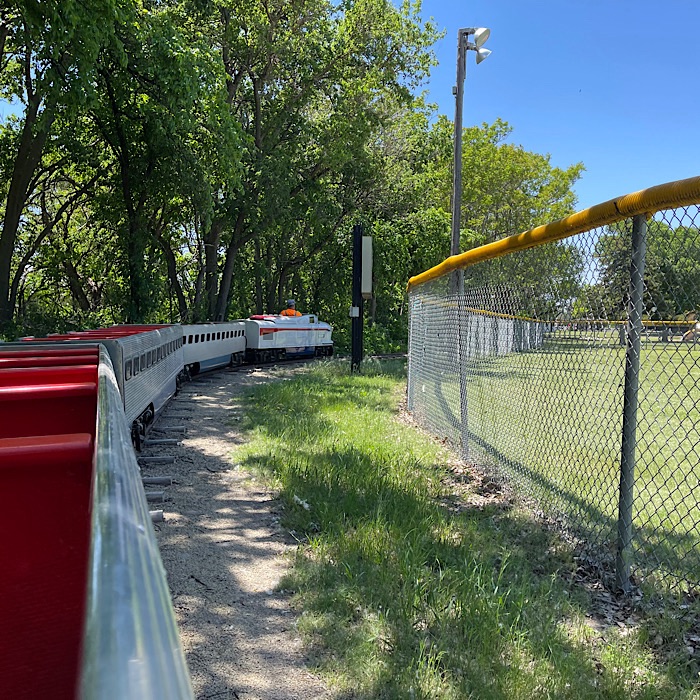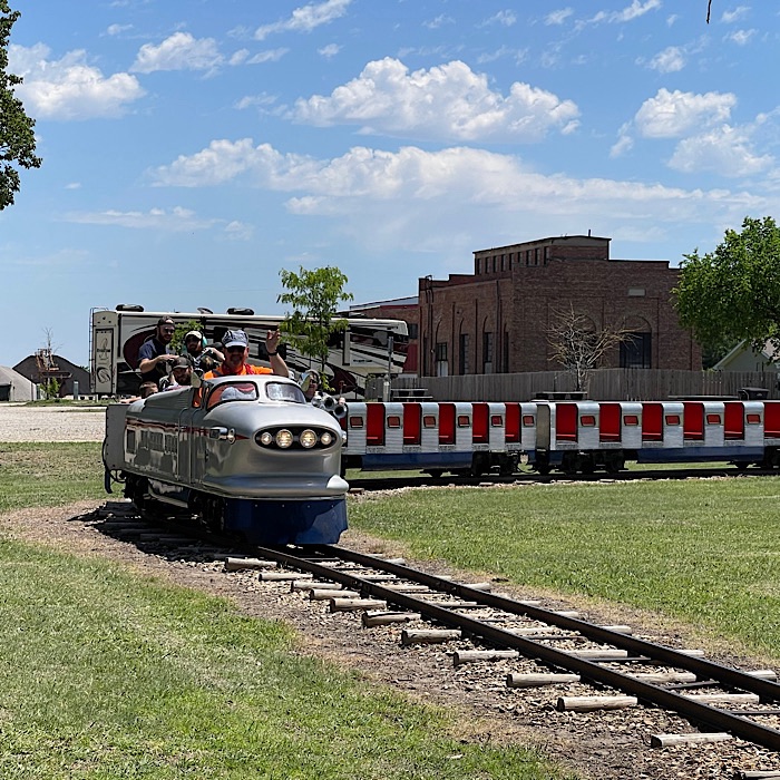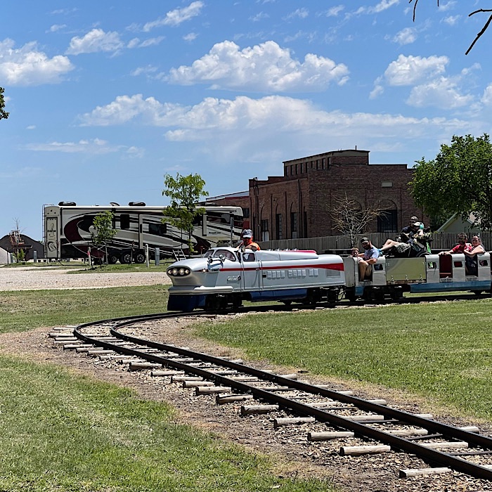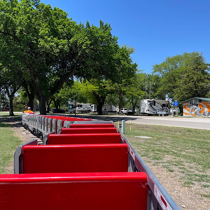After we got back to the RV, we decided to ride the miniature train before tackling the job of putting the tire back on. The train makes two loops. After the train ride, we watched a family enjoying the train.
