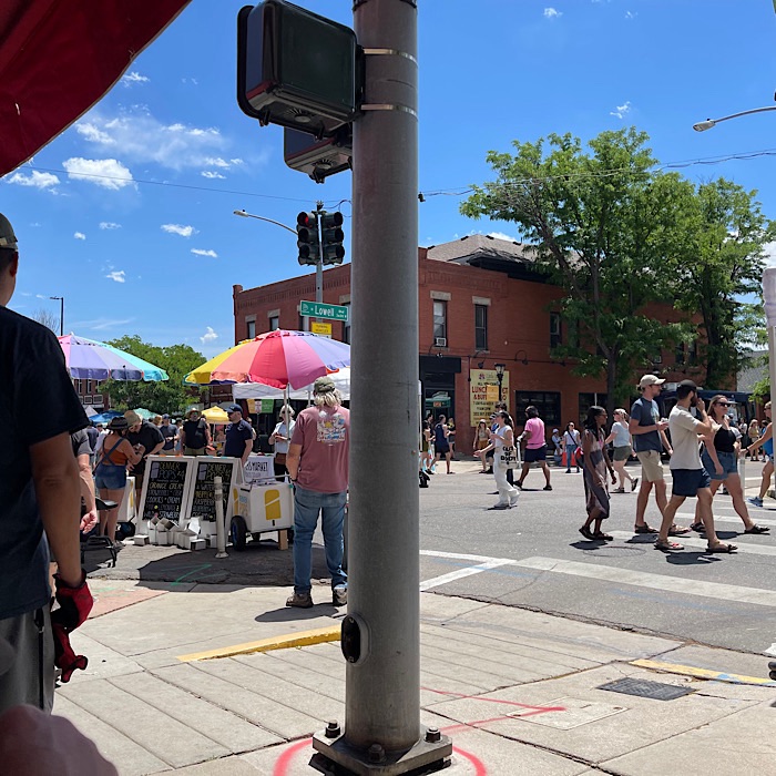 We enjoyed walking up and down the street to see the various booths. Bruce was looking for the Downslope Distillery’s booth. We walked right past it without noticing it.