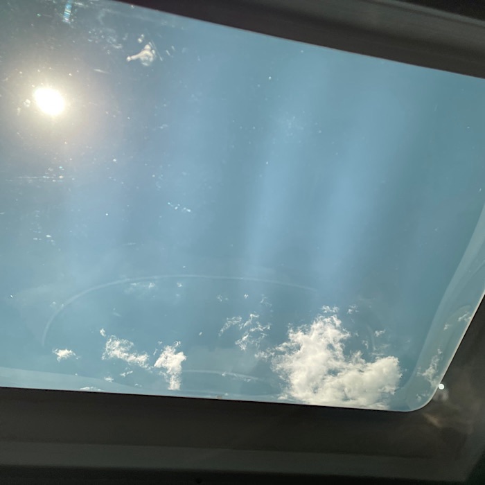 The new skylight is like our windows, dark on the outside and clear from the inside.