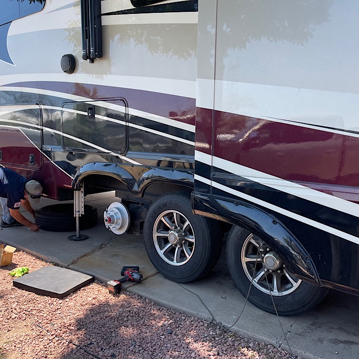 We expected the RV mobile tech to come by tomorrow, instead he showed up this morning with the brake parts and skylight.