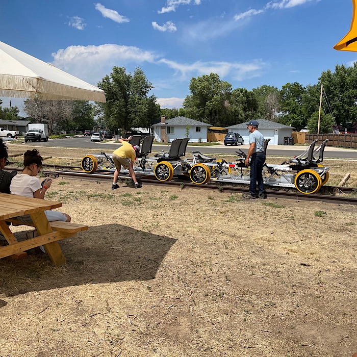 We picked Jeanne and Larry up at 1:00 PM and headed to Erie, Colorado to the depot at Colorado Railbike Adventures. We didn’t run into any problems with traffic, so we made it to the depot at 1:20 PM. We got parked in the gravel lot and walked up to the depot.