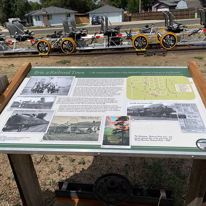 Once we arrived at the other end of the track, another owner talked to us about the history of Erie, Colorado. It was a two railroad town. The trains carried coal, livestock and pickles (yes, you read that right, pickles.) from Erie to Denver or Brighton. Some trains went up north to cross the continental divide on the transcontinental railway, while others went to Chicago.