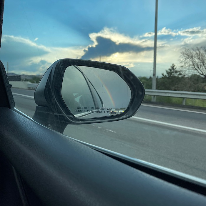 On the way home, we saw a double rainbow. I was able to keep it in sight using the passenger side mirror.