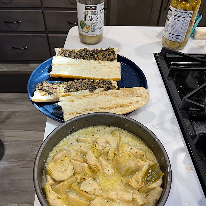 - 1/2 jar of the 33 oz Kirkland Brand oil marinaded artichokes