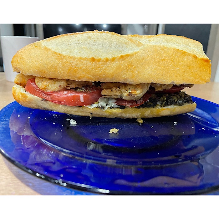 - Spread 4 heaping tablespoons of tapenade on the bottom side of the loaf of the bread that has been cut for a sandwich. See Picture 1. Repeat for the second sandwich.