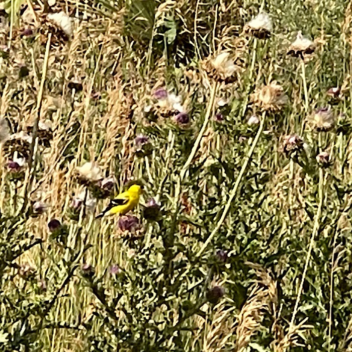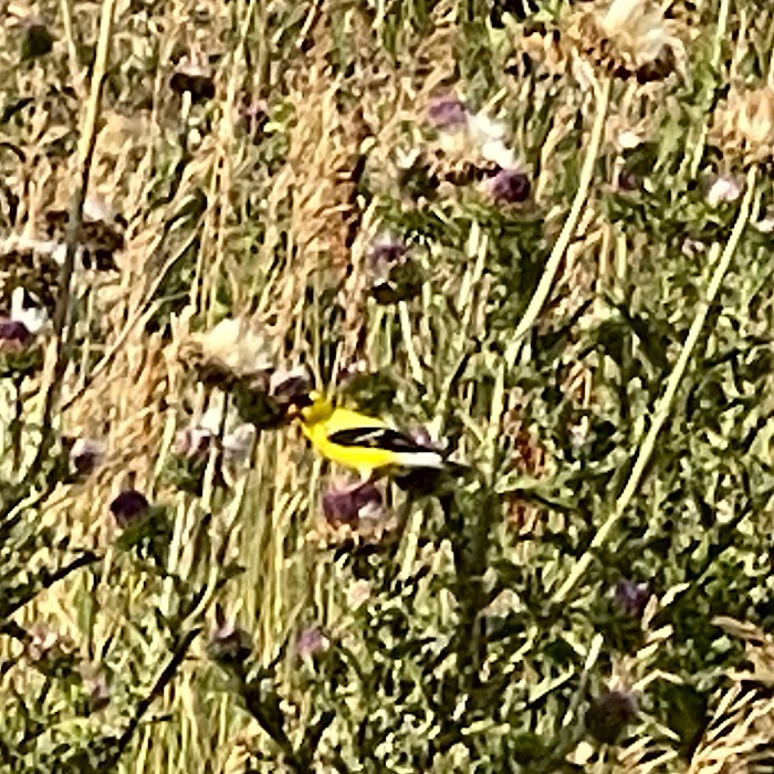 I turned to look at the yellow and realized it was a lesser goldfinch. I got Bruce’s attention and pointed to the bird. Bruce spotted him as well.